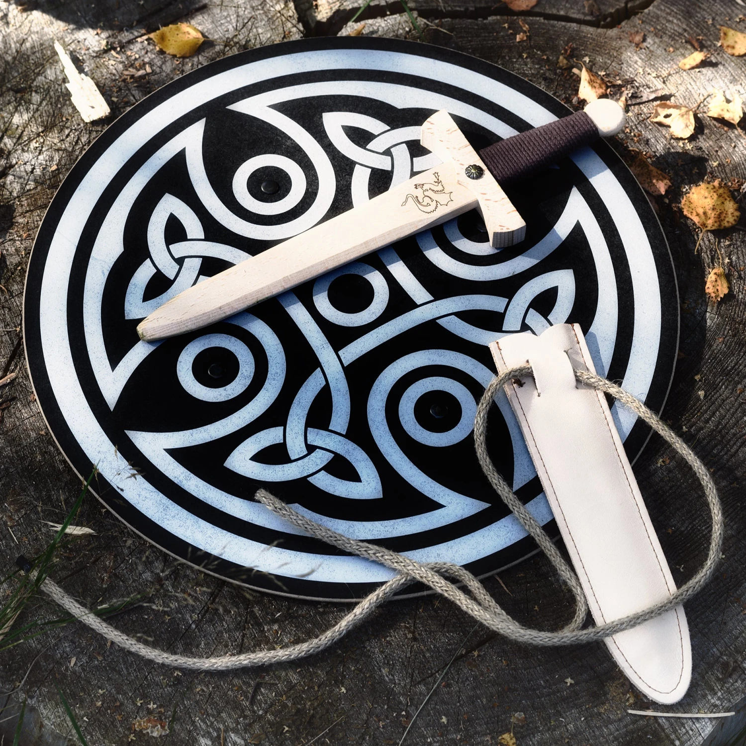 Are you going on a dangerous adventure exploring magical lands, full of fire breathing dragons and mythical beasts? This wooden shield is perfect for budding warriors; light, beautifully crafted, and with arm straps to hold it secure.