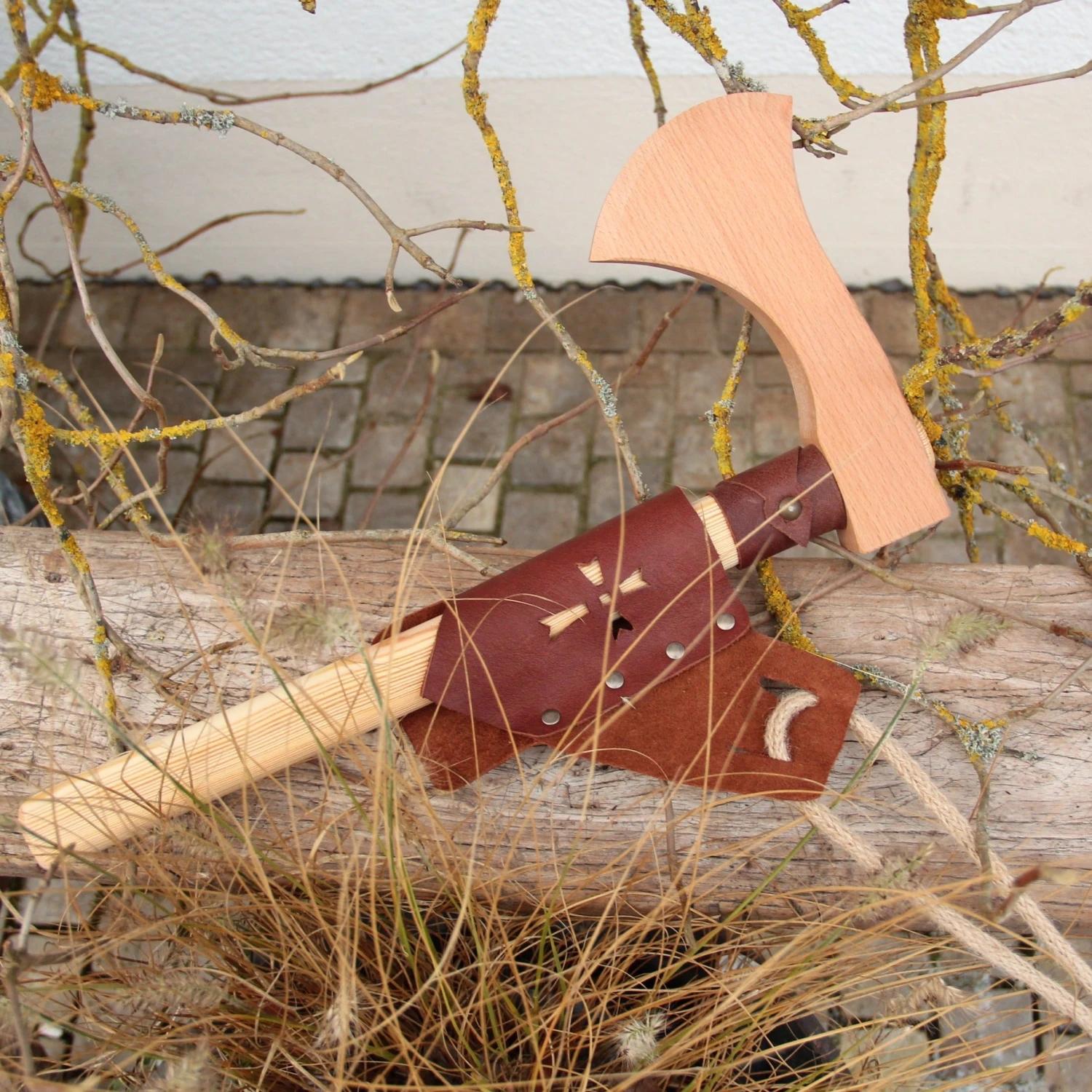 Sword and axe sheath in leather with rivet detailing, for keeping your sword or axe handy when out and about on magical adventures. Great addition to your dressing up box.