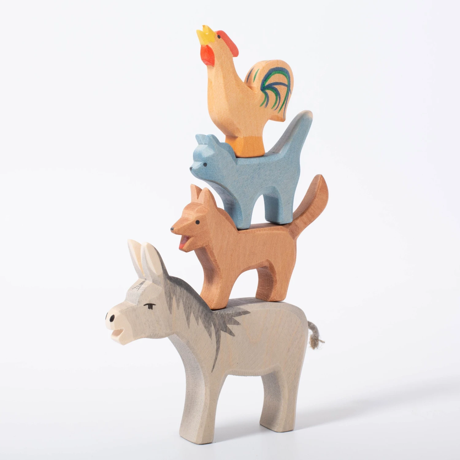 4 Ostheimer animals from the Fairytale about the Donkey, Dog, Cat & Rooster, that can be stood on top of each other!