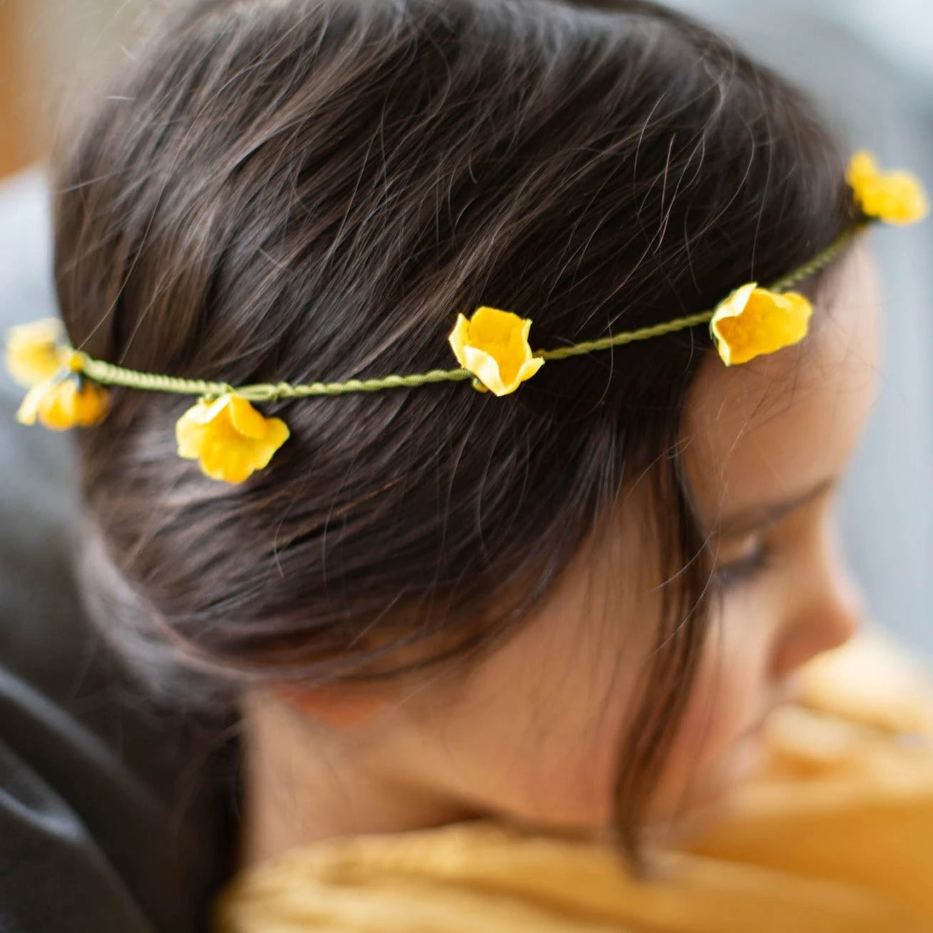 Crown yourself queen of the buttercup fairies! Wear it as aĀ garland or woven into your hair, as a necklace or accessory to any summer outfit. Make them as long or short as you like as you loop each individual buttercup together yourself.