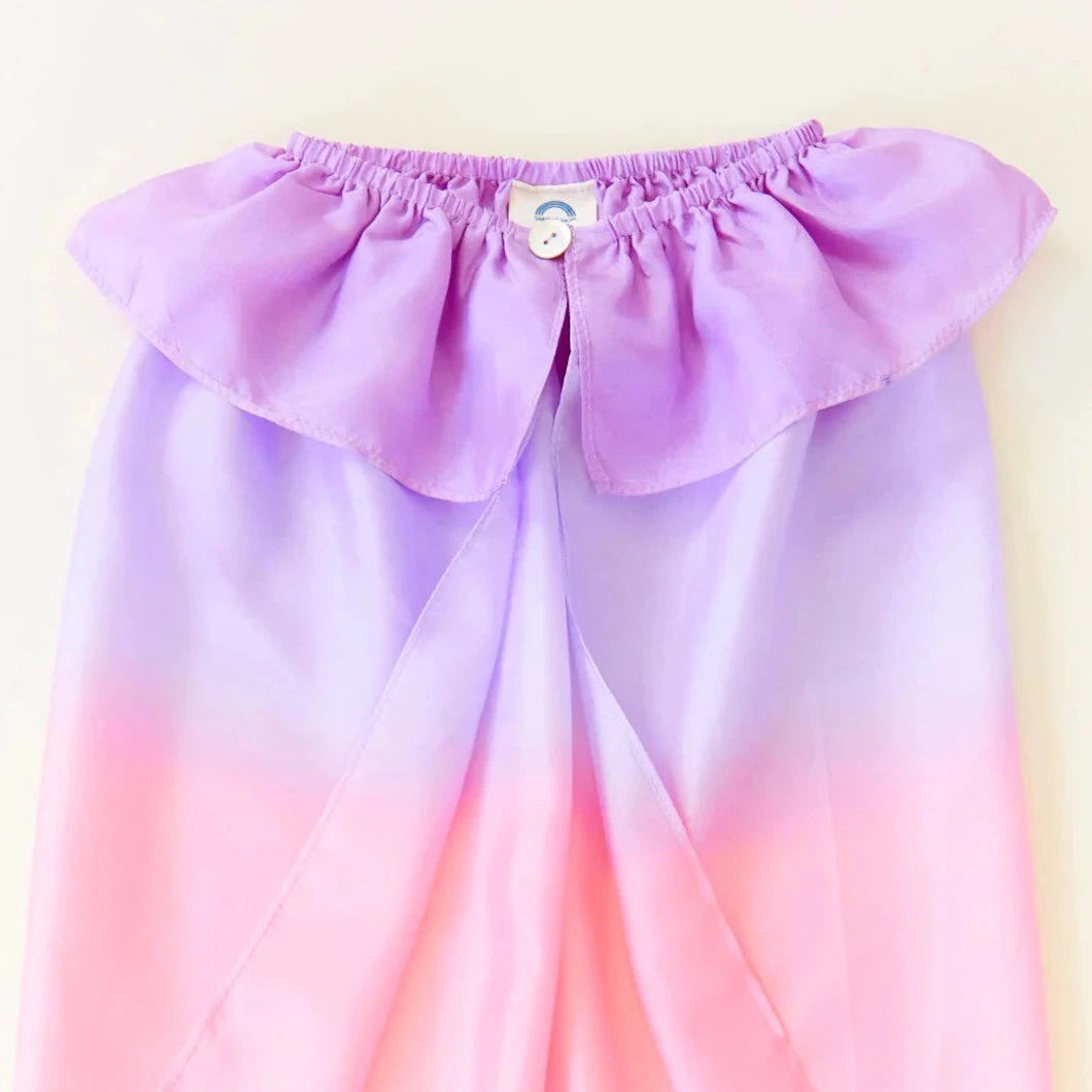 Silk capes are a staple for dress-up and role play. They are silky soft yet durably made from heavyweight silk. An elastic neckband and shell button make Sarah’s Silks Capes easy to put on and take off, and keep things simple for children!