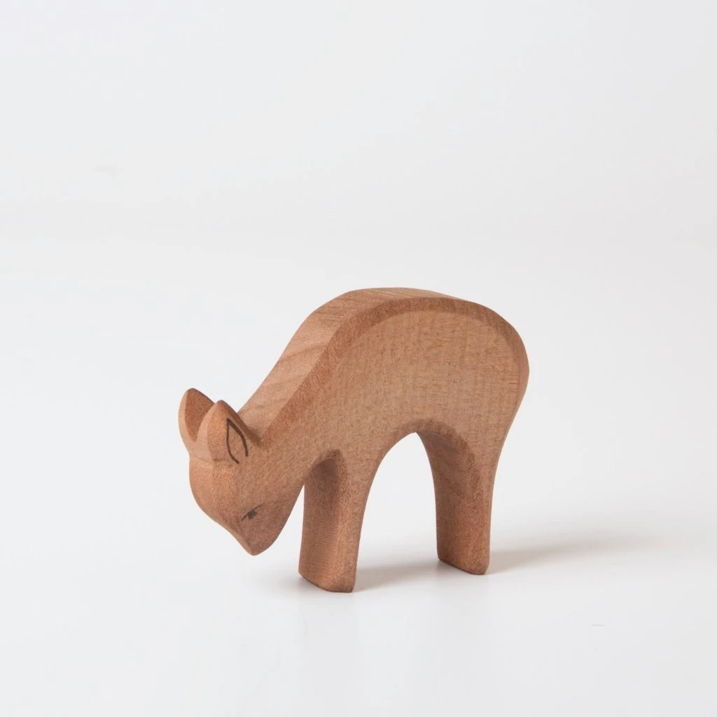 Handcrafted wooden deer eating – part of the Ostheimer woodland animals collection.