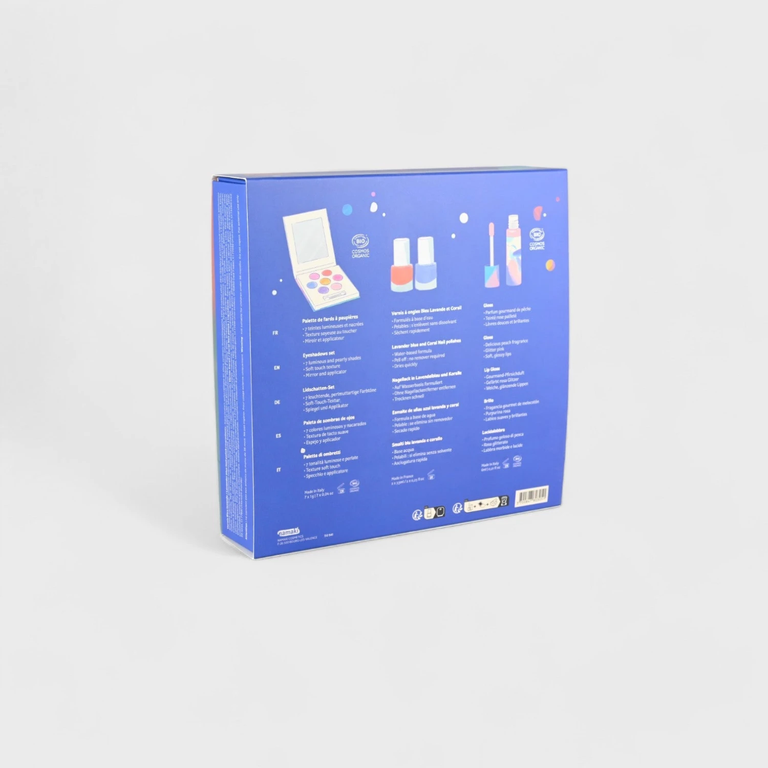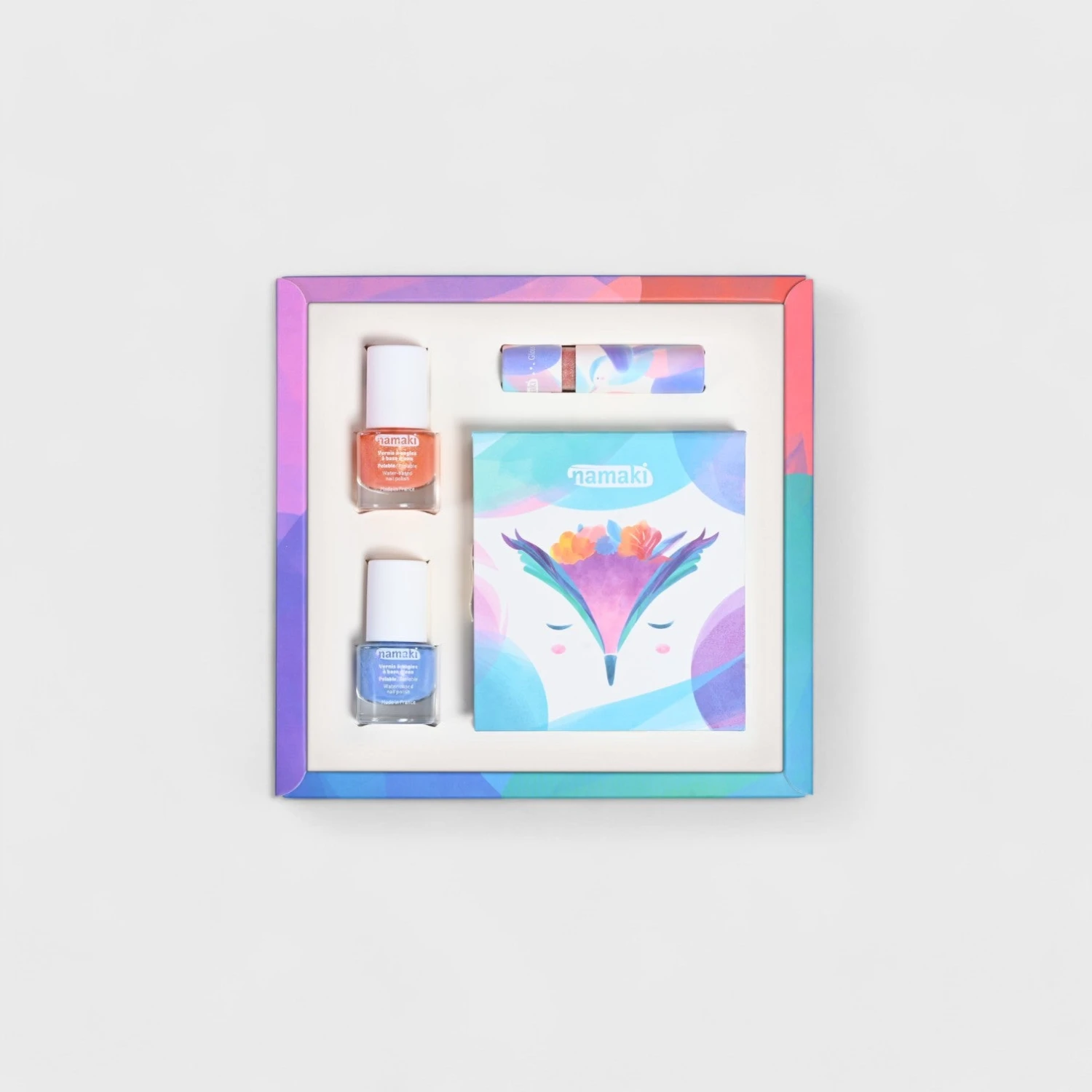Add the final touches to your magical outfit with this organic magical make up set, including eyeshadows, nail polish, and glitter lip gloss!