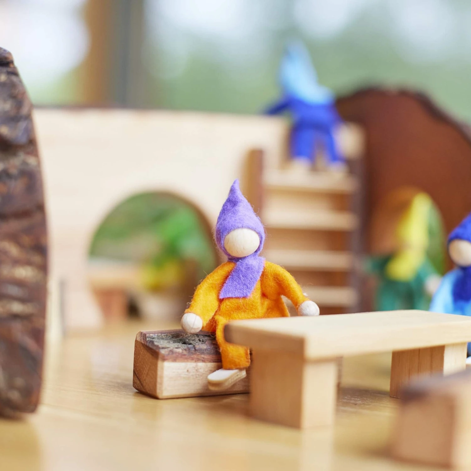 With their bendy limbs and sturdy feet, these felt gnomes are just about capable of getting about the forest themselves! But they’re happy to have some help sometimes, especially when it comes to play.