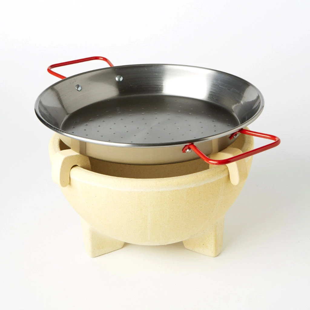 Made from fireproof ceramic. Includes ceramic supports for use with pan.