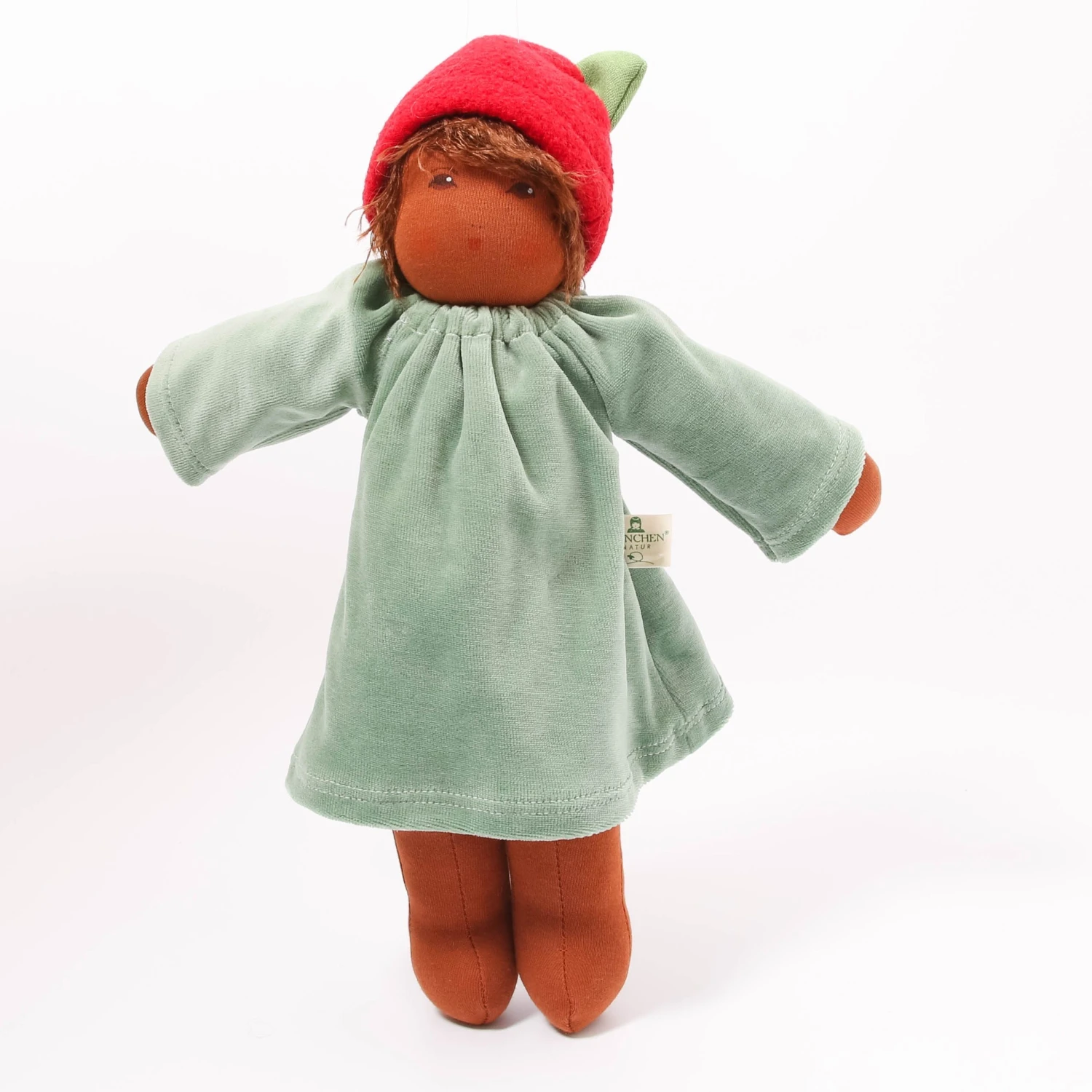 Lilly wears a cute apple hat and green dress, and she fits Nanchen’s range of doll clothes. Completely safe and toxin free for little ones, and sure to be cherished for years to come.