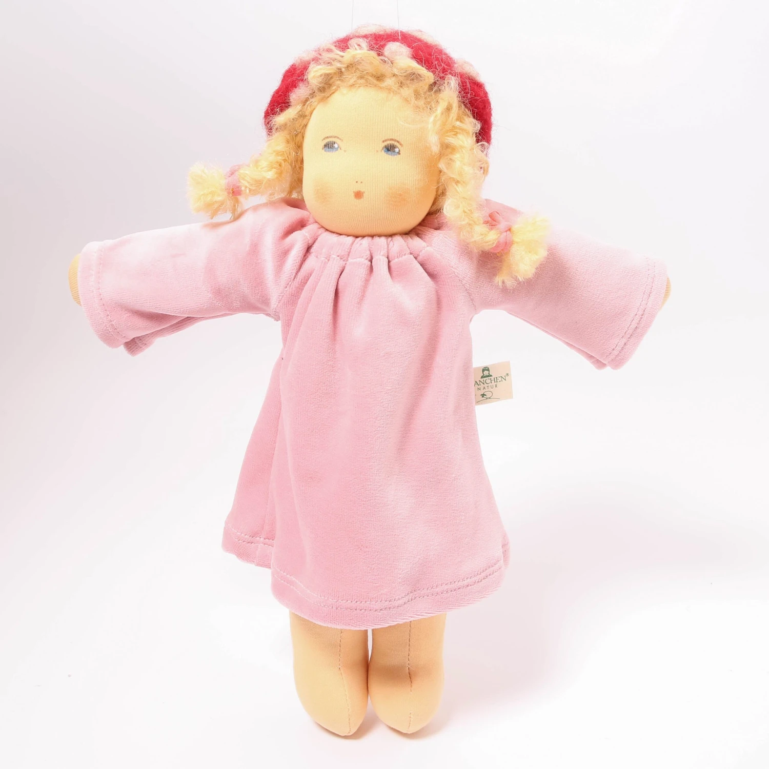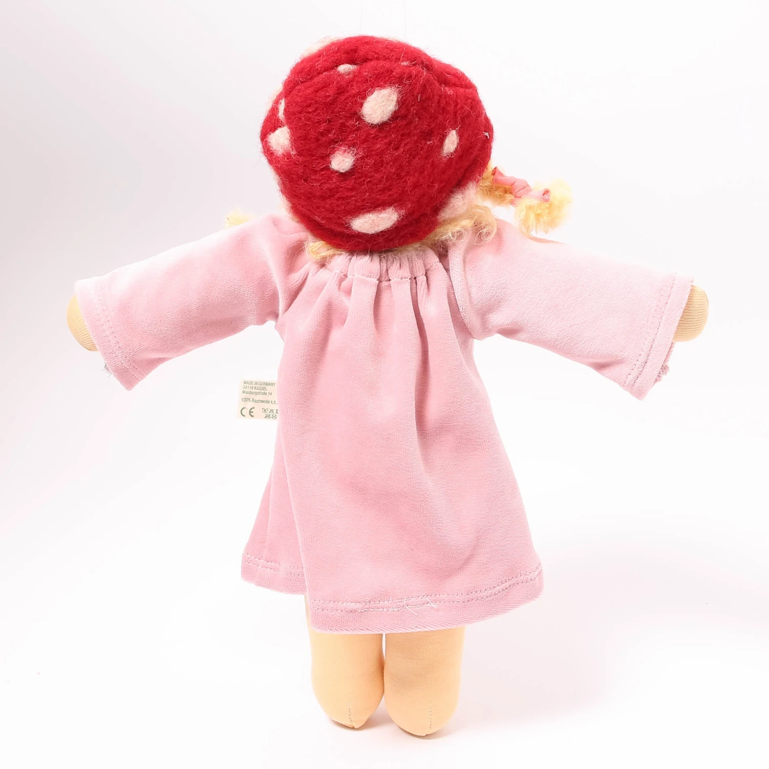 Lolle wears a cute mushroom hat and pink dress, and she fits Nanchen’s range of doll clothes. Completely safe and toxin free for little ones, and sure to be cherished for years to come.