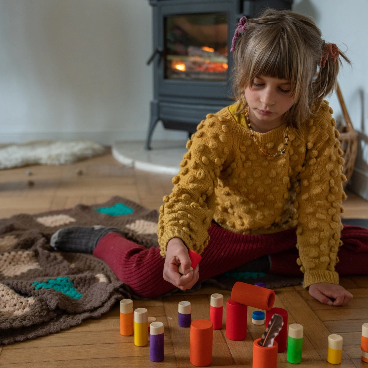 One of the two little sisters of our renowned Lola set, containing 36 pieces in our 6 basic colours. Open-ended and cheerful by nature, Lo is the perfect companion for any playtime. Also perfect for activities that stimulate divergent thinking, eye-manual and logical-mathematical development.