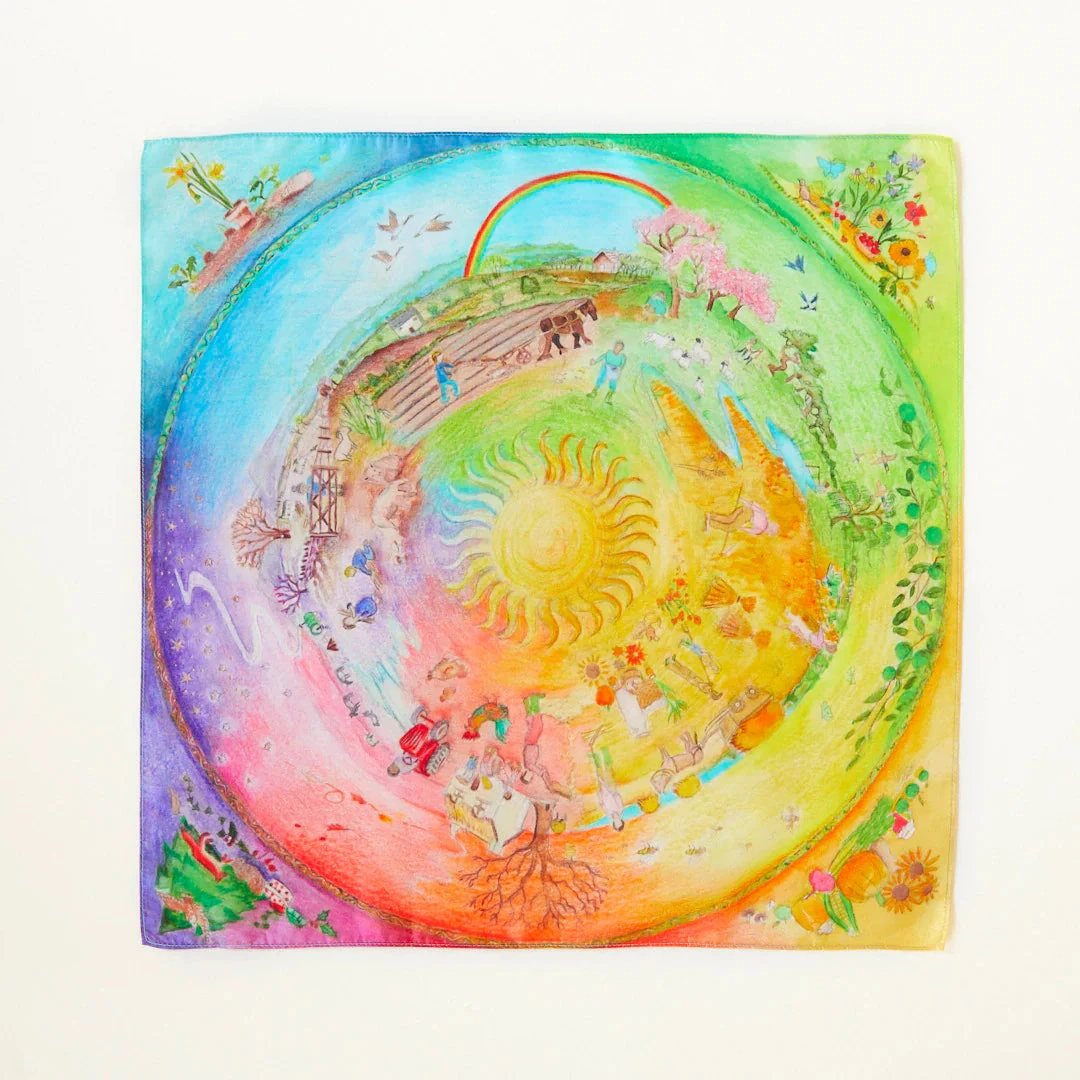 Around the Year Playsilks encourage little ones to recognise the turning of the seasons and cultivate their awareness of the Earth’s natural rhythms. Families use Around the Year Playsilks to decorate nature tables, and celebrate birthdays and seasonal holidays.