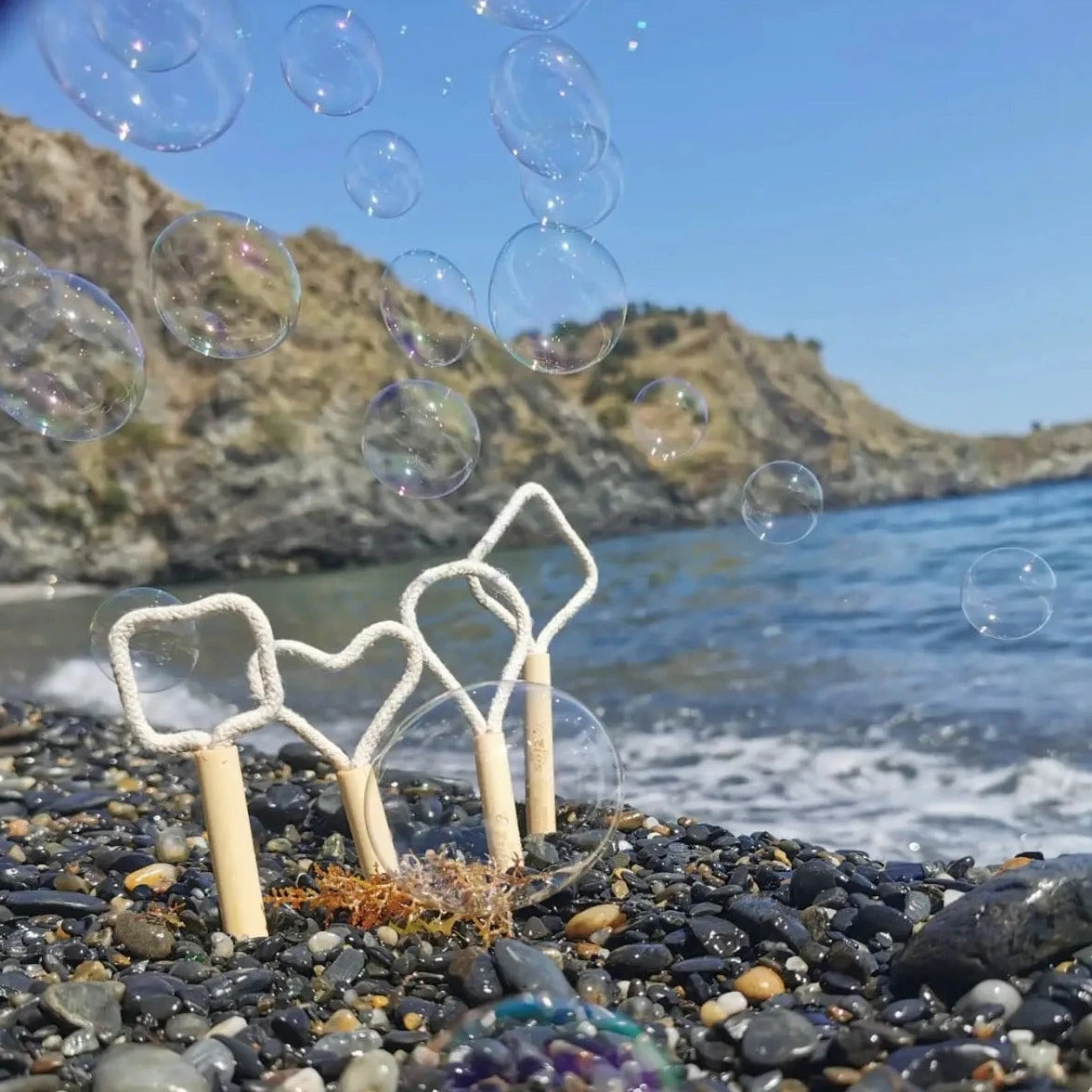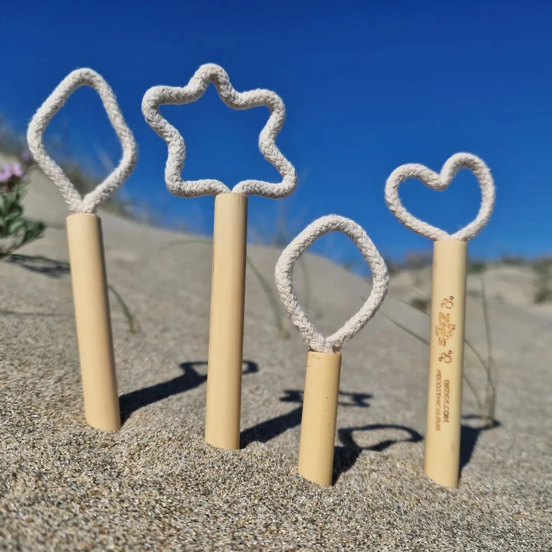 Hand mould these bubble wands into any shape you like! These mini wands are plastic-free, with a bamboo stem and cotton loop, and make bubble play even more fun!