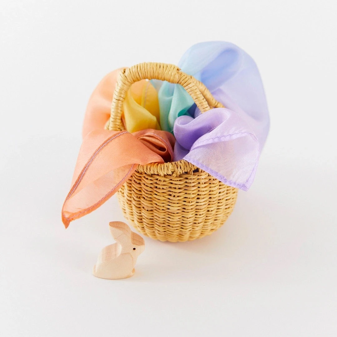 The Soft Rainbow colour way is back, this time in mini for the Easter Collection! Playsilks are inspiring, magical toys that children will be drawn to play with time and time again. The simplicity and open-ended nature of Playsilks tap directly into the child’s creative potential. They also make stunning scarves and capes!