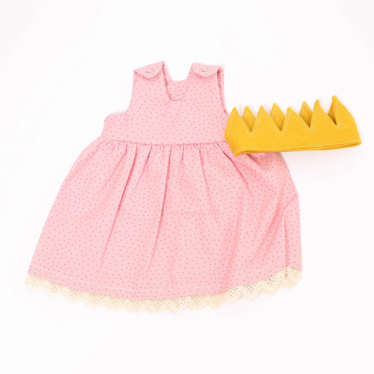 Beautifully hand-crafted summer fairy outfit. Dress your Nanchen doll in this adorable yellow and white polkadot jersey cardigan with tiny little white silk wings sewn at the back. The dress is printed with the cutest ladybug, bumblebees and caterpillar print on organic cotton fabric.Â