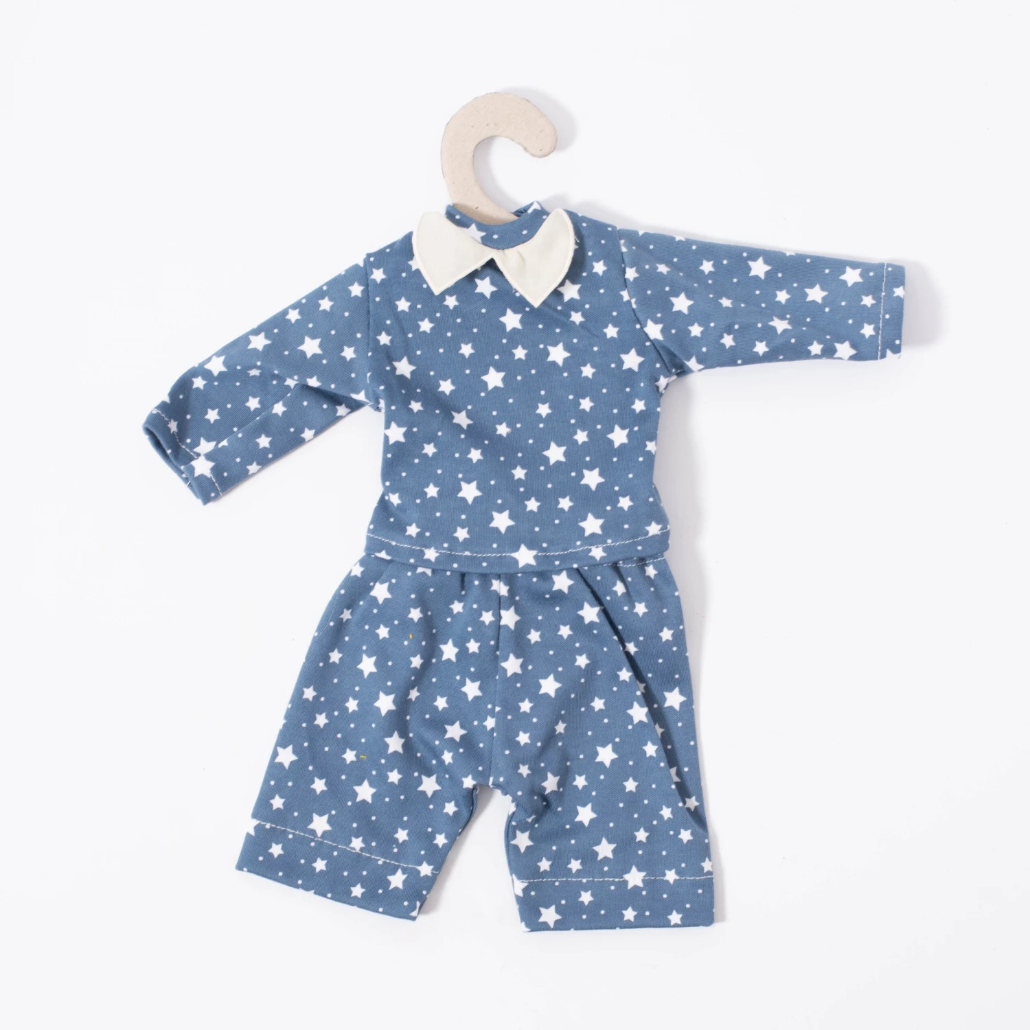 Beautifully hand-crafted pyjama outfit. Dress your Nanchen doll in this adorable blue and white jersey pyjama set. Printed with white stars on organic cotton fabric.Â