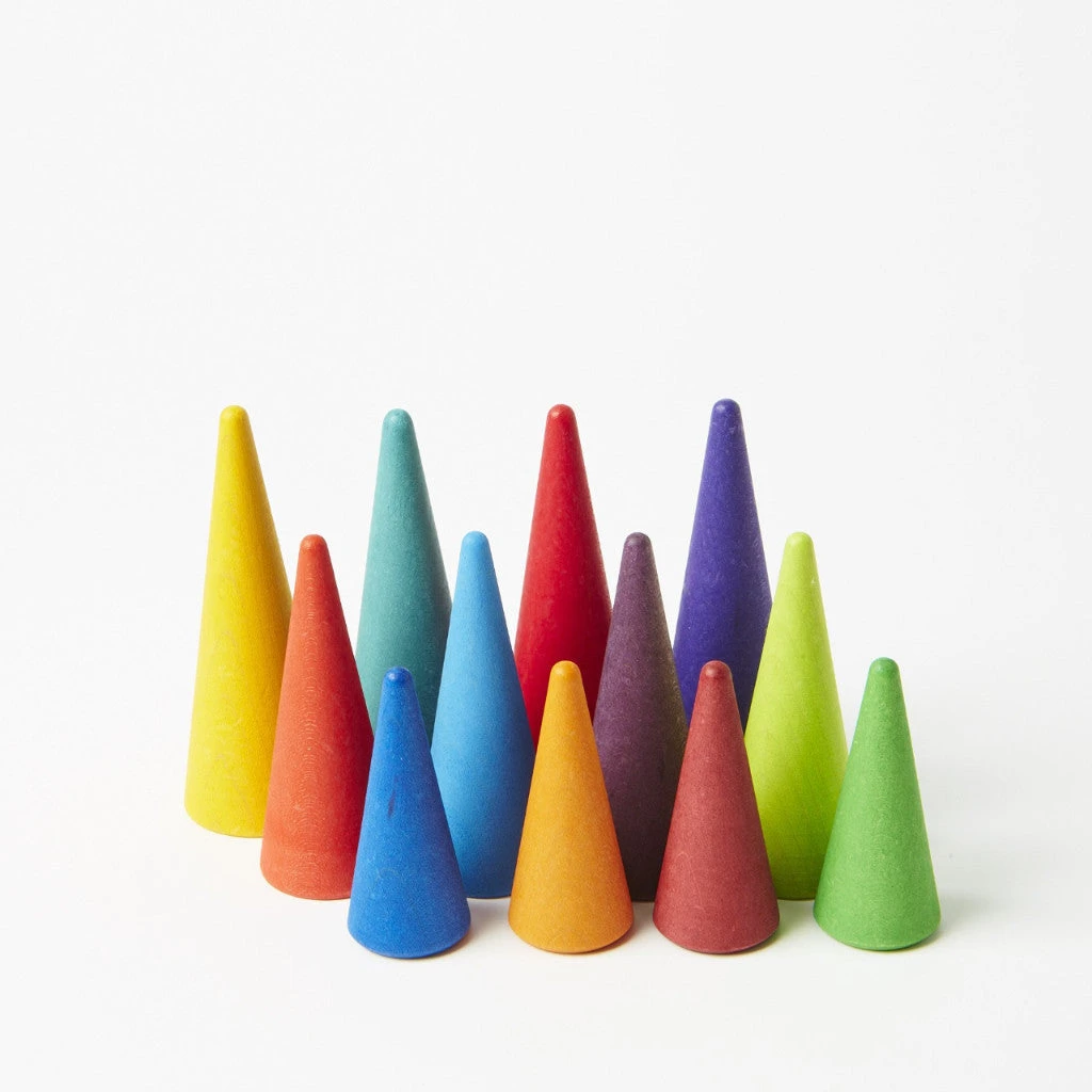 Create a forest for each season with colourful tree tops. Cones in assorted sizes can be used for spires and roofs when combined with a selection of building blocks.Â