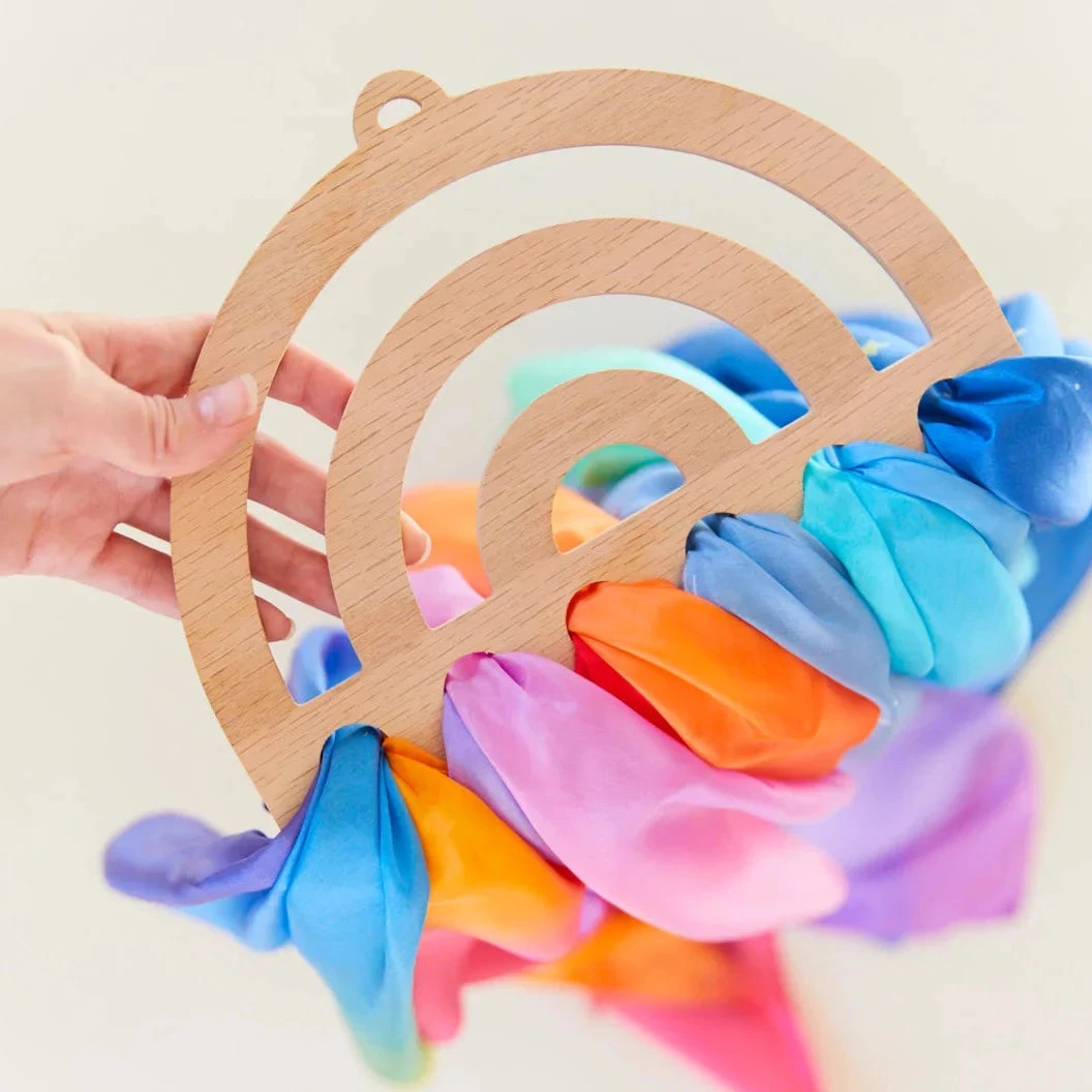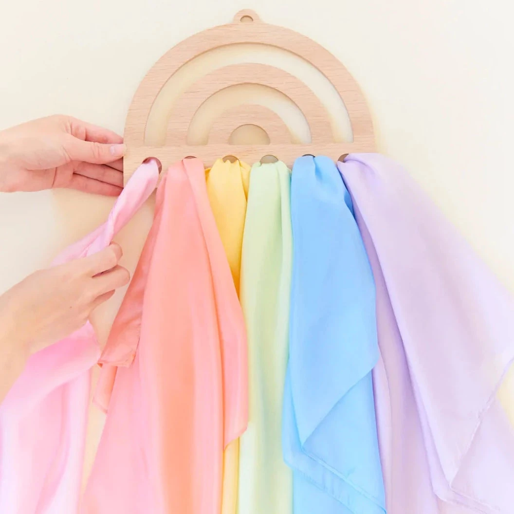 A beautiful display option for homes and classrooms. Simply hang on a wall and slip your Playsilks through! Easy and fun for children learning to care for their toys, and encourages young ones to keep playrooms tidy.