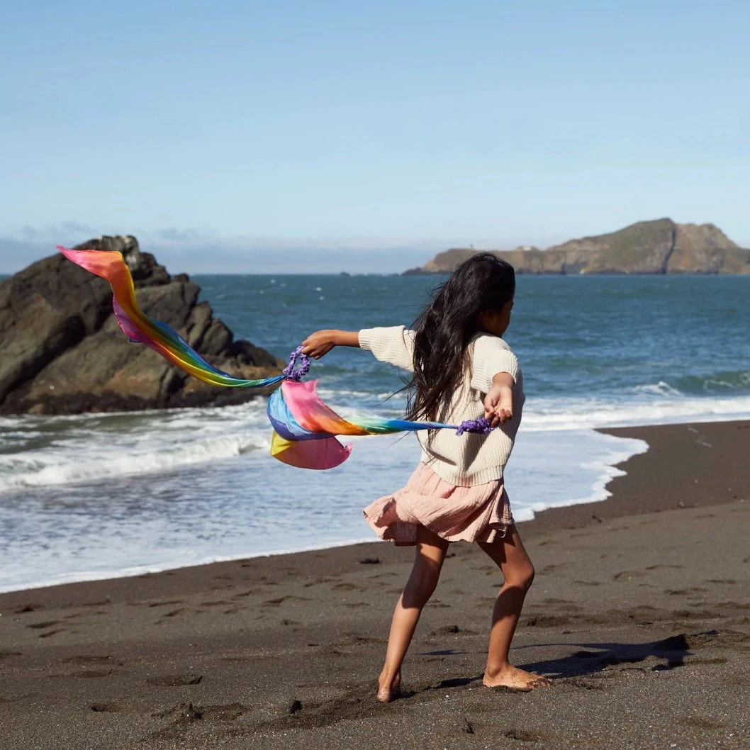 Dance through every colourĀ with this set of rainbow silk wrist streamers from Sarah’s Silks, leaving the trail of a rainbow wherever you run, dance and play.Ā