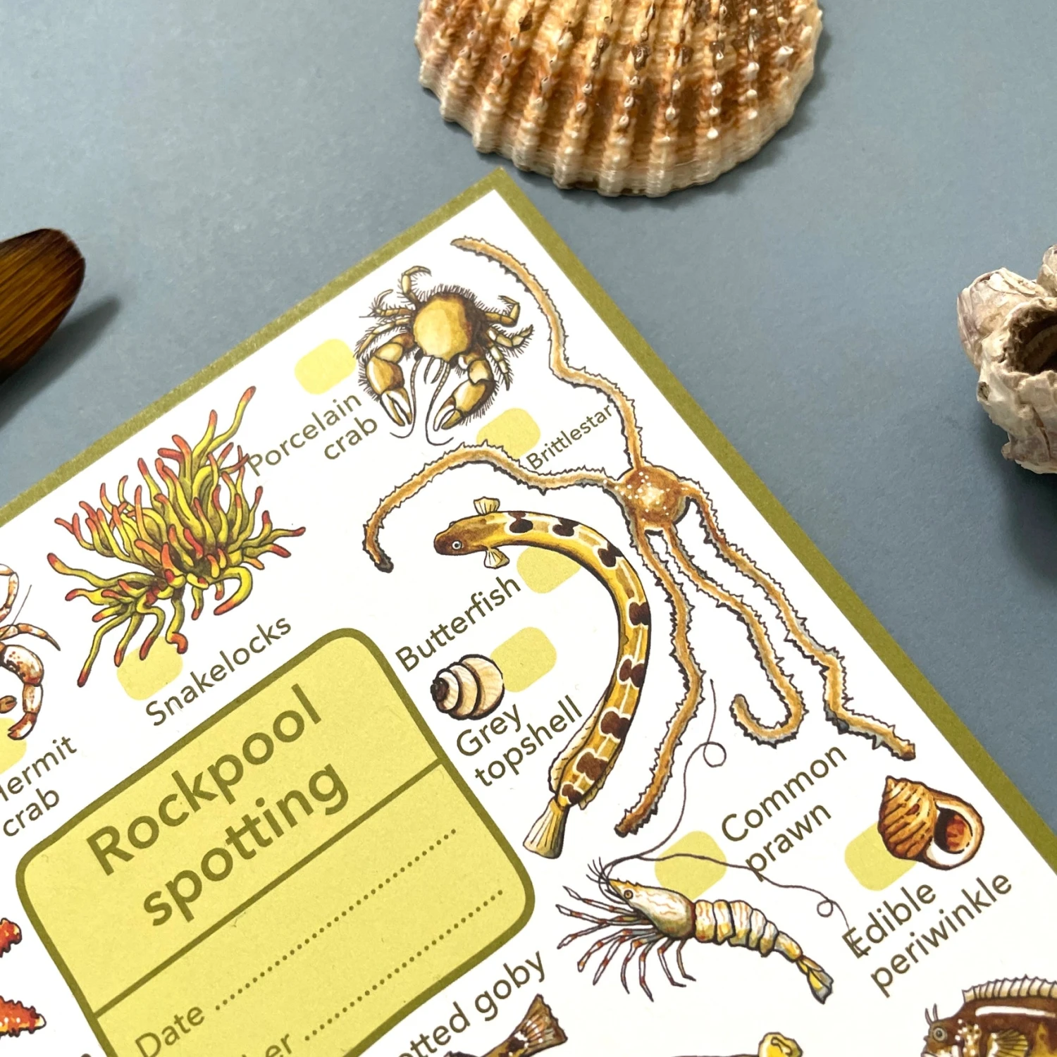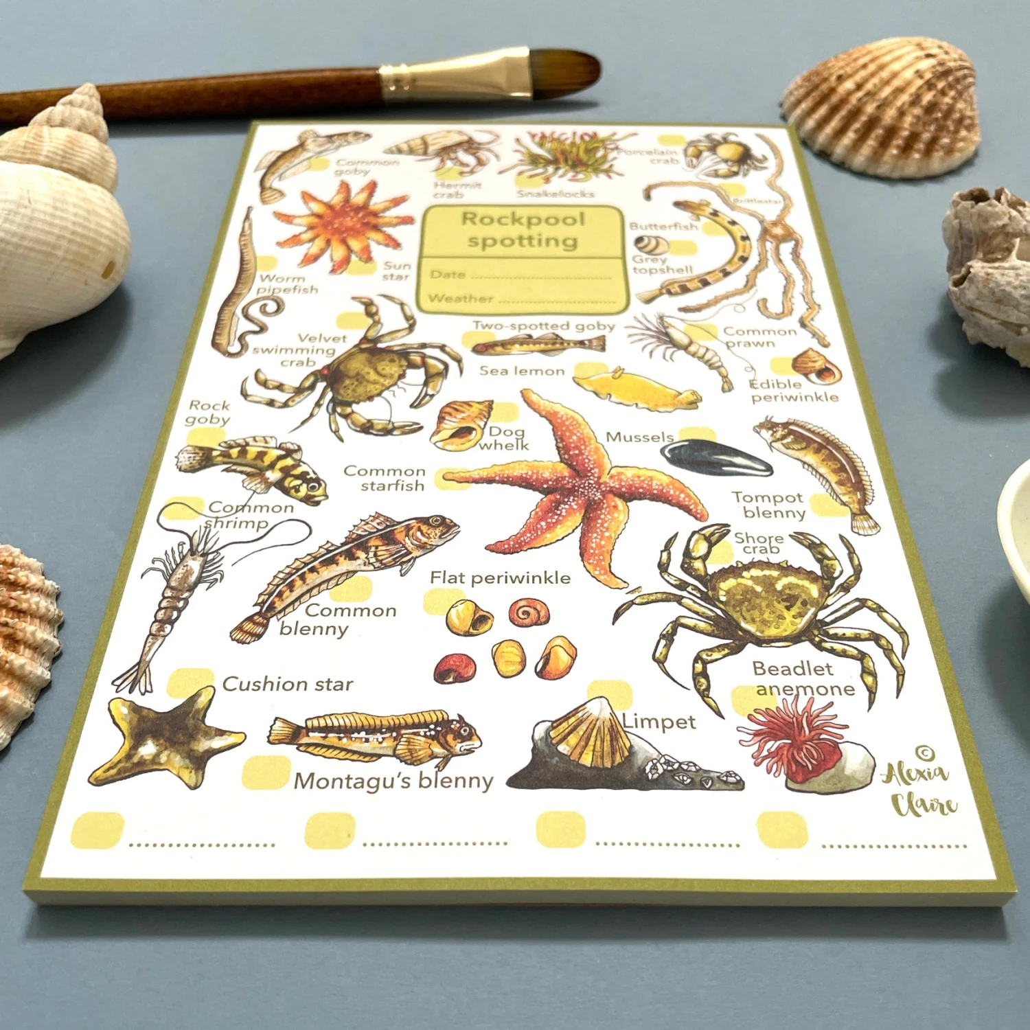 Enjoy Rockpooling at any age with this Rockpooling notepad. This wonderful notepad has an illustration of each species, along with a tick box whereby you can tick them off or note the number of that species you’ve seen.