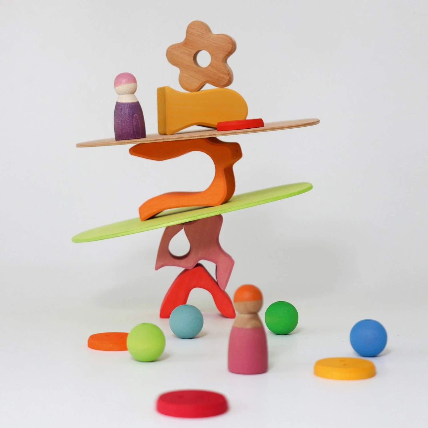 This Small World Down by the Meadow starter set provides open-ended building materials that can be played with in a multitude of ways. Through building and creative play, the set will support motor skills development and imaginative play. Ethically made in Germany using sustainably certified timber, each smooth and tactile piece of the set has been hand finished in water-based natural dyes to create timeless wooden toys.