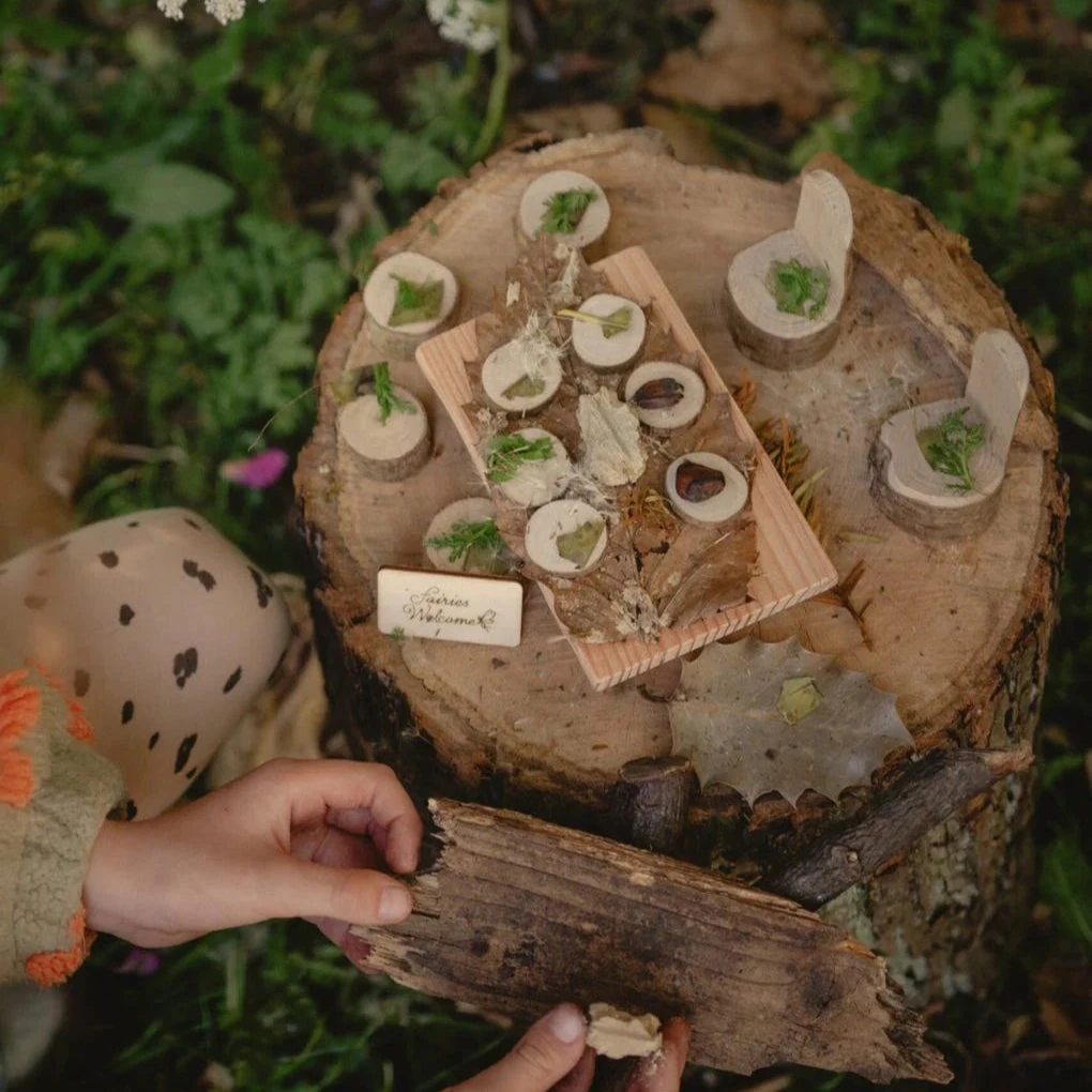 Six Tiny Wooden Plates: Great for serving imaginary meals like the fairy favorite, flower petal pie.