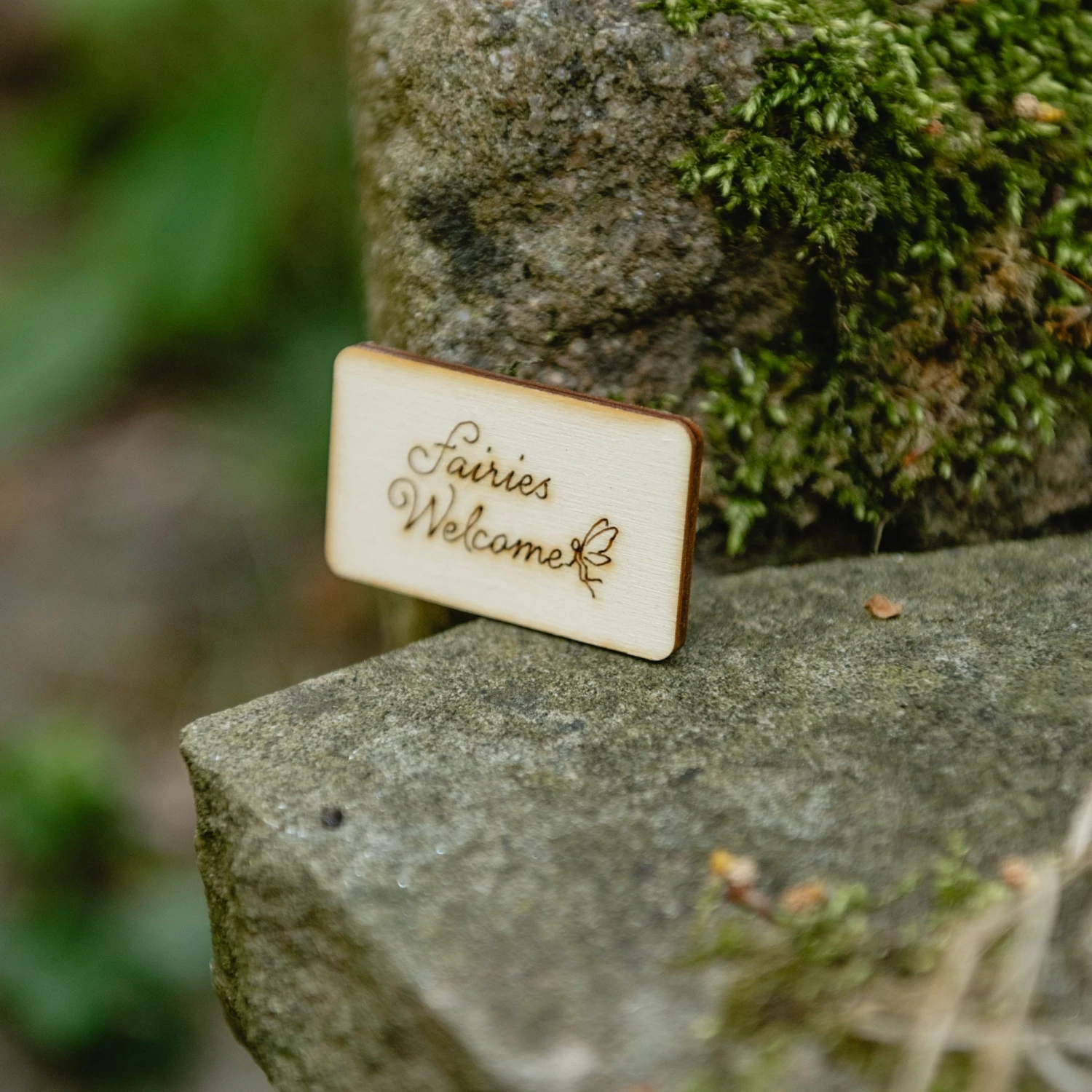 “Fairies Welcome” Sign: A warm invitation signaling to magical guests that your fairy garden awaits.