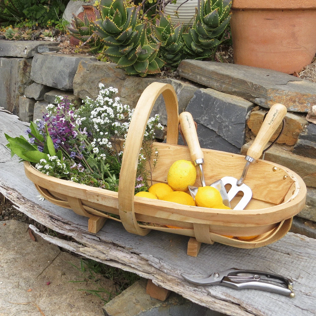 This large garden trug is formed from strips of shaped FSC Populus wood held in place by solid brass pins and screws. This product is hand-made from natural materials and as a result it may vary slightly from the images.