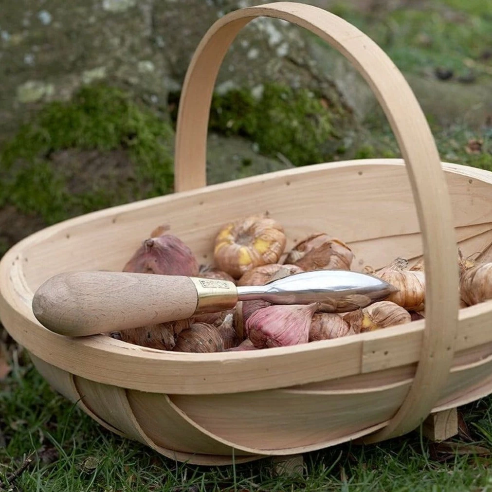 This medium garden trug is formed from strips of shaped FSC Populus wood held in place by solid brass pins and screws. This product is hand-made from natural materials and as a result it may vary slightly from the images.