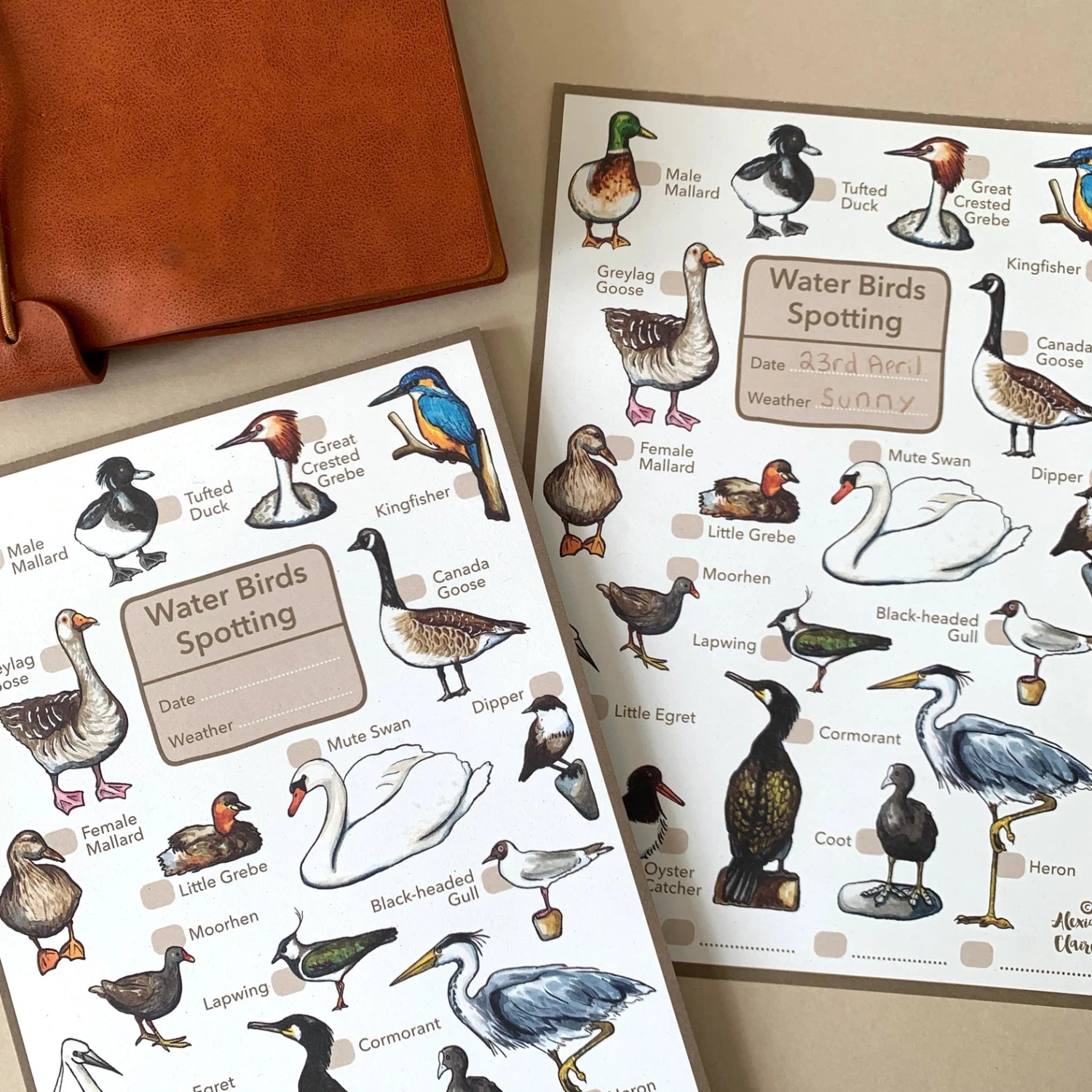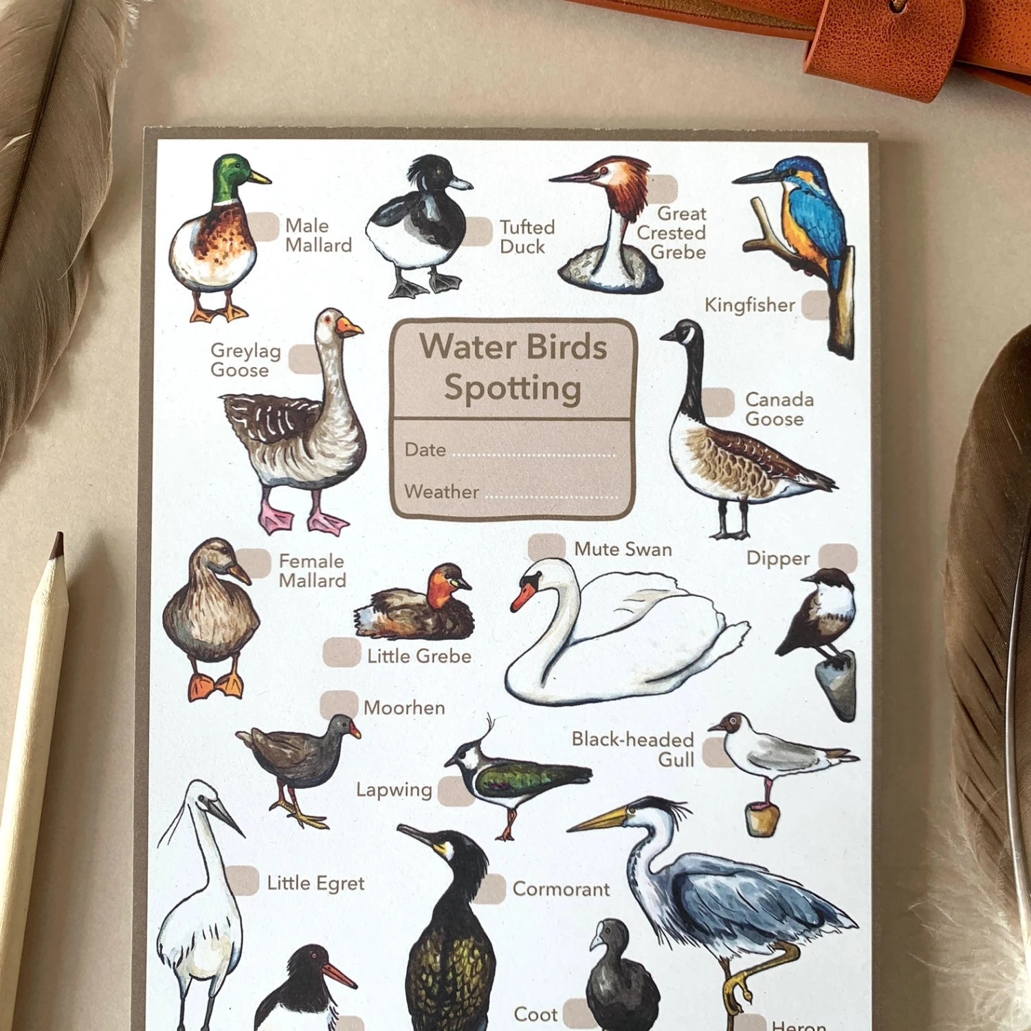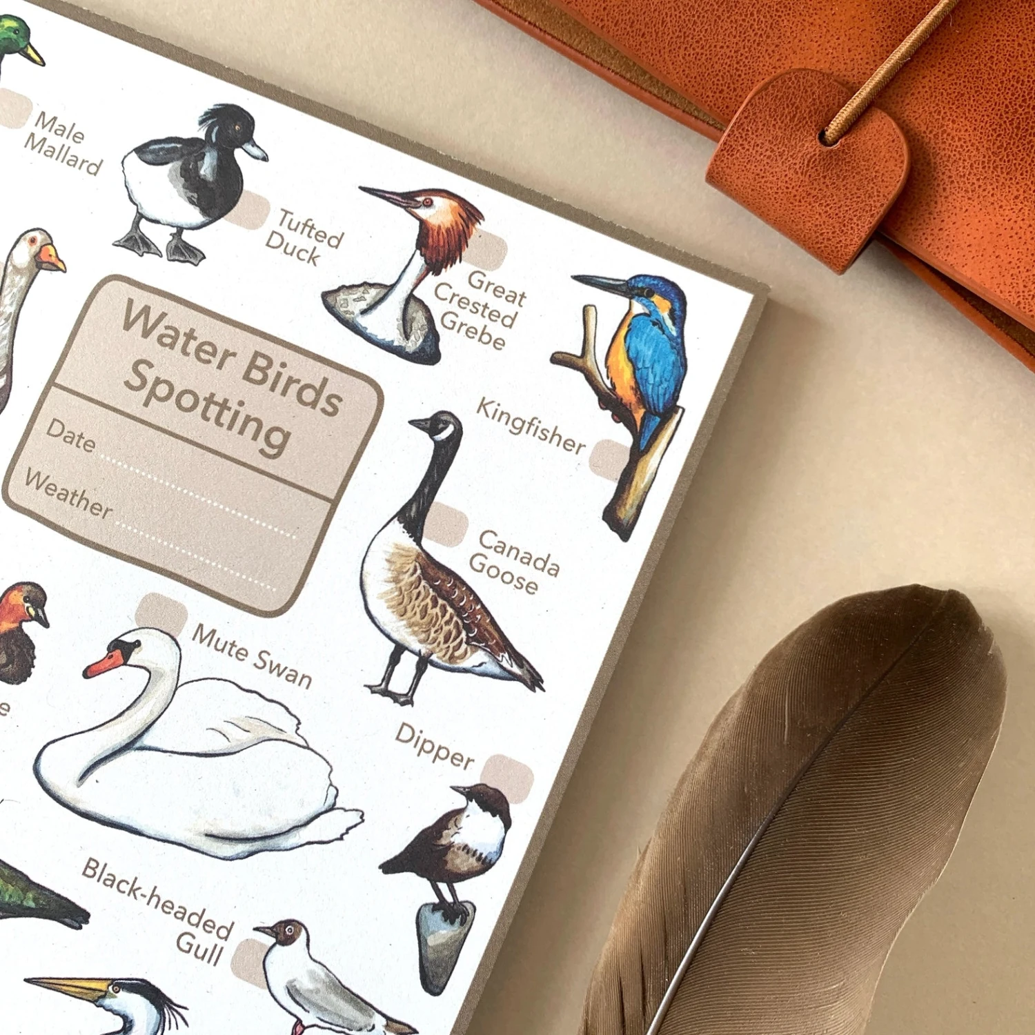 Enjoy Water Bird watching at any age with this Water Birds spotting notepad. This wonderful notepad has an illustration of each species, along with a tick box whereby you could tick them off or note the number of that species you’ve seen.
